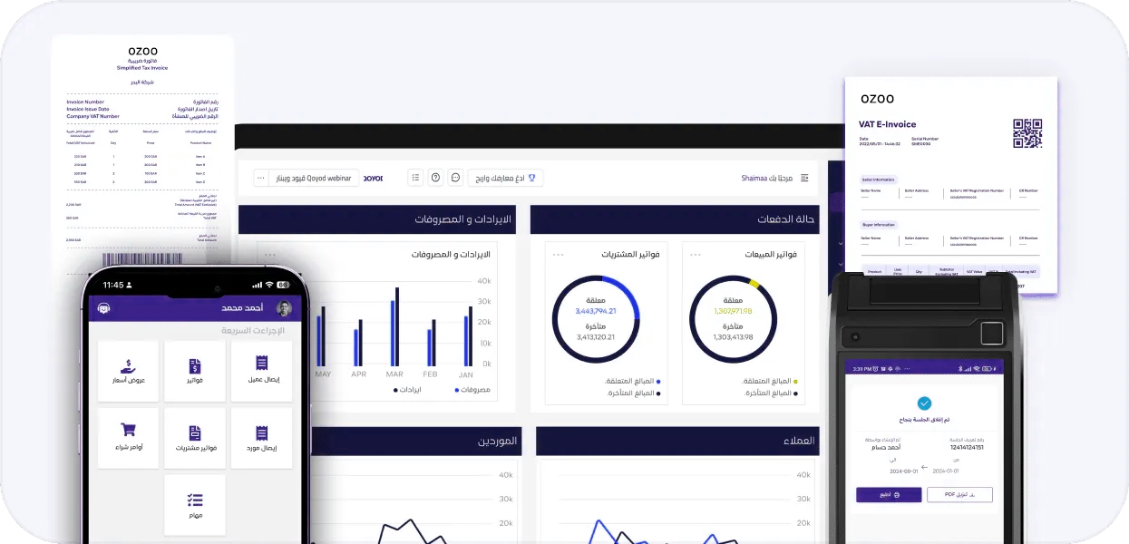 أدر عملياتك المالية بسهولة مع برنامج أوزو المحاسبي المُصمم لتلبية احتياجات الشركات في جميع القطاعات لتحسين كفاءتها، وضمان الامتثال والشفافية، وتحقيق النمو